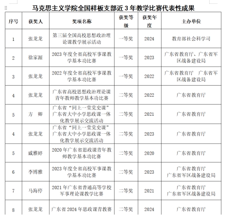 马克思主义学院教工党支部于2019年获批教育部第二批全国党建工作样板支部,现有党员60人。支部以党建业务双融双促为指导,将支部政治学习与教师业务提升、党建学习平台与思政课教学平台、党建主题活动与思政实践活动、党建与学科科研建设、思政课程与课程思政等“五个深度融合”相结合,推动教学改革,打造思政金课,发挥育人合力,落实立德树人的根本任务。立项以来,支部党员获得省校级各类党建思政教学成果奖100余项,发表论文100余篇,新增省校级党建思政科研项目30项,工作经验在省内外交流分享近10场次,1名教师获评广东省优秀共产党员荣誉称号。