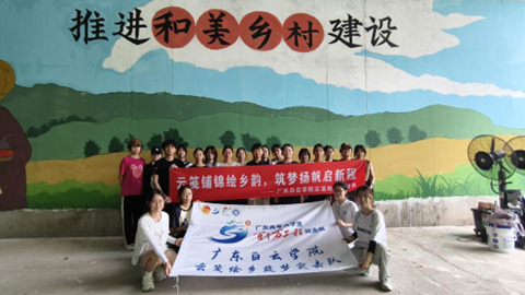 日前,广东白云学院云笺绘乡筑梦突击队走进广州市江高镇郭塘村,开展为期五天的"墙绘赋能乡村振兴"主题实践活动。17名白云学子充分发挥专业特长,以艺术之笔描绘乡村振兴新貌,将31米长、4.9米高的水泥拱壁,绘就成一条“会讲故事”的彩虹长廊,为郭塘村增添了一道靓丽的文化风景线。