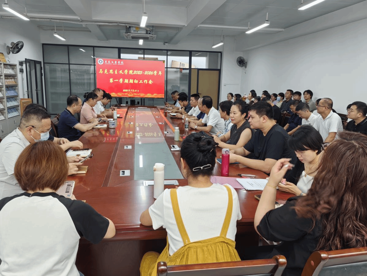 2025 年 8 月 29 日,马克思主义学院在励学楼 107 召开新学期工作会议。会议由副院长邢增銮主持,全院教职工参会,重点传达学校中层干部会议精神,总结学院近期工作亮点,部署新学期重点任务,并对教师队伍建设提出明确要求。