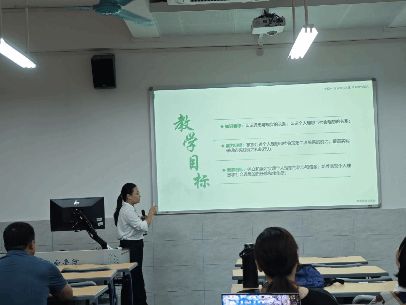 罗燕虹老师则从“学情精准对接”角度分享经验。她提出,教学需先精准把握学生认知特点与成长困惑,再通过热点话题与典型事迹搭建理论与现实的桥梁。她以“功勋人物事迹”“村超现象”为切入点,阐述如何引导学生理解“个人理想与社会理想的统一性”;同时结合“白云学子成长案例”“苏炳添与体育强国建设”等贴近学生生活的实例,帮助学生将抽象理论转化为具体认知,有效提升学习主动性与参与度。