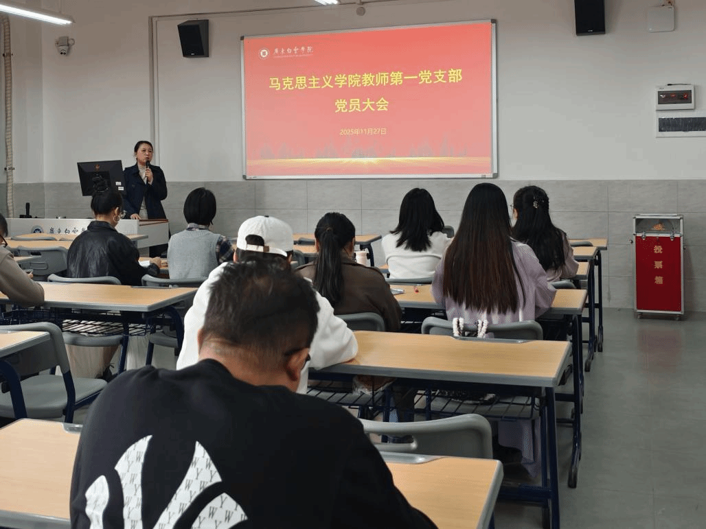 11月27日,马克思主义学院教师第一党支部在励学楼207室召开党员大会,开展支部委员选举及主题党日学习活动。本次会议由支部书记杨霞主持。