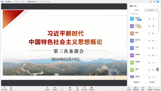 3月19日上午,马克思主义学院习近平新时代中国特色社会主义思想概论课程组召开线上第三次集体备课会,专题研讨课程第三章、第四章教学重点与实施路径。学院副院长兼教研室主任涂浩然主持会议,副院长桑立群及课程组全体教师齐聚云端研讨。